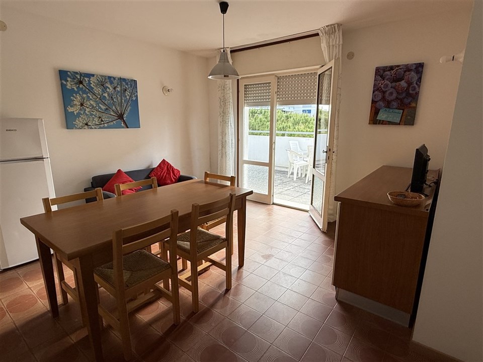 Trilo 8 - 1 ložnice s manželskou postelí, 1 ložnice se 2 samostatnými lůžky a palandou, obývací pokoj s rozkládacím gaučem typu šuplík pro 2 osoby, oddělený kuchyňský kout, sociální zařízení se sprchovým boxem, prostorná terasa. Dovolujeme si upozornit, že apartmán se nachází ve 3. patře bez výtahu. Klimatizace nelze dokoupit ani doobjednat na místě, apartmán je bez klimatizace.