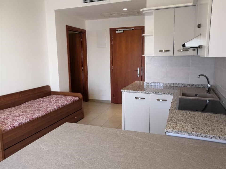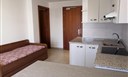 Popis ubytování Mono 3 - obývací pokoj s rozkládacím gaučem pro 2 osoby a jedním dalším lůžkem pro 1 osobu, kuchyňský kout, sociální zařízení, některé apartmány s balkónem