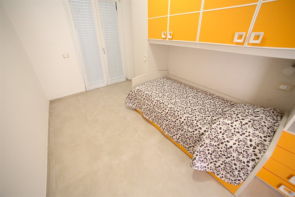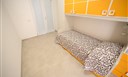 Popis ubytování Trilo 4/6 – obývací pokoj s rozkládací pohovkou a kuch. koutem, ložnice s manželským lůžkem, ložnice se 2 samostatnými lůžky, vlastní soc. zařízení, terasa.
