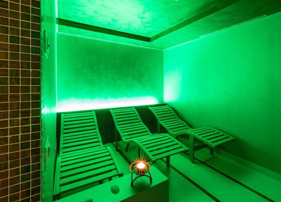 wellness centrum pro max 8 osob* (otevřeno na objednávku od 15.00 do 20.00h, vstup pro hotelové hosty starší 16 ti let - 20 €/os.): vířivka až pro 6 osob, sauna (70-90˚C), pára (40-50˚C), 2x multifunkční sprcha, relaxační koutek s lehátky, Kneippův chodník. Dále je možné objednat masáže** a kosmetické služby** (**není zahrnuto ve vstupu do wellness centra, služby za extra příplatek na místě)